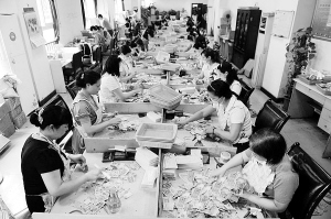 本报综合消息 近日,记者来到重庆市电车公司收银中心,走近这群特殊的点钞女工。如果,你有一个梦想是“睡觉睡到自然醒、数钱数到手抽筋”,再看看她们,你可能会对这句话有新的理解。由于钞票携带大量粉尘,清点中她们必须戴上口罩。