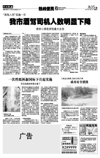 我市酒驾司机人数明显下降