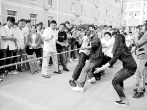 五四青年节上午,周口饭店、平原宾馆两家单位联合举办了一场职工趣味运动会,通过拔河、篮球接力跑等集体项目及自行车慢骑等个人项目,进一步丰富了广大职工的文化生活。 晚报记者 宋风 摄