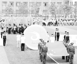 5月4日,淮阳县中小学“阳光”运动会开幕式在西城中学运动场隆重举行。来自全县各乡镇中心校、各级各类学校的26支代表队,796名运动员,教练员和大赛组委会全体成员参加了开幕式。据了解,本届运动会共设高中、初中、小学3个组别,涉及田径、篮球、跳绳、乒乓球、毽球等项目。运动会从5月4日开始,到5月7日结束。晚报记者 杜欣 摄