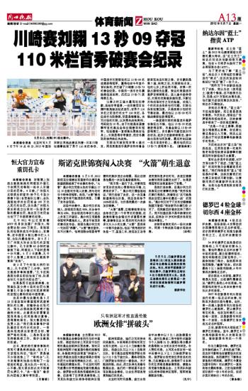 川崎赛刘翔13秒09夺冠 110米栏首秀破赛会纪录