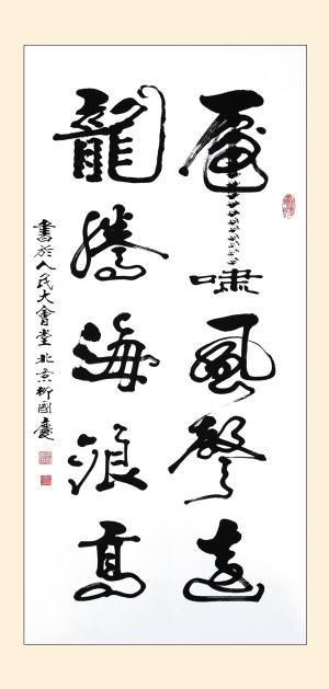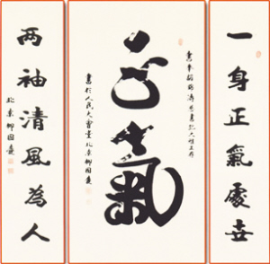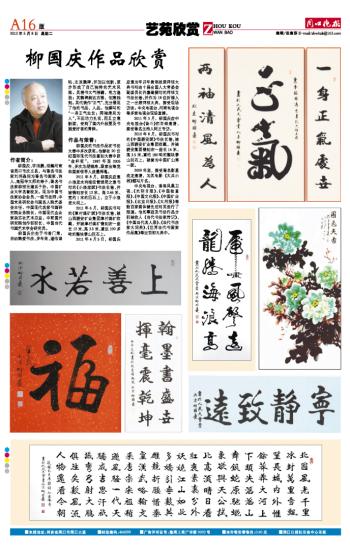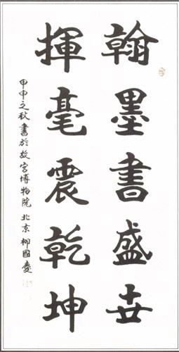 柳国庆出生于书香门第,自幼酷爱书法,多年来,遍临诸帖,主攻魏碑,并加以创新,逐步形成了自己独特的艺术风格。其榜书大气磅礴,笔力遒劲;其魏碑韵达古雅,创意独到。其代表作“正气”,充分展现了他的书品、人品。他撰写的“一身正气处世;两袖清风为人”,不但功力扎实,而且立意新颖,受到了国内外政要及书画爱好者的青睐。