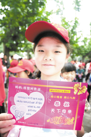 在现场,小记者争先恐后表演了精彩的节目,为辛勤培育自己的母亲送上了精美的节日贺卡。节目表演结束后,现场工作人员为每一位小记者发放了一朵康乃馨,伴着台上深情的音乐《感恩的心》,小记者把自己精心填写的祝福卡和康乃馨恭敬地送给了自己的母亲。有一对母女情不自禁地拥抱在了一起,母亲流出了幸福的眼泪:“今天的活动,可以说触摸到了母亲心灵最脆弱的神经,孩子和母亲的爱更深刻地体现了出来。”