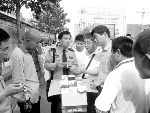 昨日上午,市公安局经侦支队走上街头,向市民宣传如何防范假币犯罪、假发票犯罪、银行卡犯罪、非法集资犯罪、传销犯罪、制售假冒伪劣商品犯罪、虚开增值税发票犯罪等行为。晚报记者 朱东一 摄