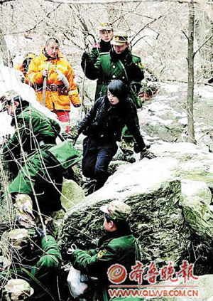 山中虽然零下十几摄氏度,不少人却穿得很单薄。“不能穿太多,走走就要出一身汗。”在武警和消防战士心中,只有救人,没有自己。为了争取时间,队伍很少休息。人们总是在不停地上山、下山。搜救人员将女驴友藏身地锁定在无路可通的山腰或山梁。对救援人员来说,与其说是爬山,不如说是攀岩,没有支撑点,根本爬不上去。只能抓着石头、树枝所有能抓得住的东西,一点一点艰难地向上爬。如果抬头,前面全是脚下扬起的沙尘。