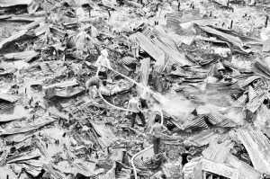 5月16日,消防员在孟加拉国首都达卡一贫民区灭火。