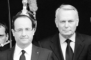 5月15日,法国新任总统奥朗德(左)和新任政府总理让-马克·艾罗在巴黎市政厅出席活动。
