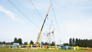 为做好今年我市迎峰度夏的电力供应工作,5月15日至17日,周口供电公司克服种种困难,对220千伏邵川线和邵淮线进行导线互换改造(如图)。该工程是我市今夏的电力重点工程,改造结束后,将使我市电网的输送能力提高15%,为全市的经济发展和人民生活提供强有力的电力保障。
