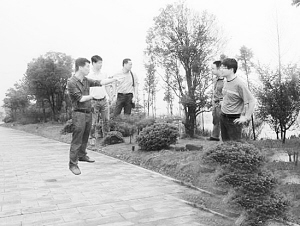 新闻配了一张图片,图片中,5名“气功了得”的工作人员,神情自若地“漂浮”在绿化景观中。