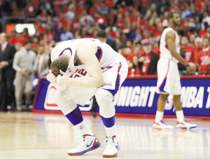 5月21日,洛杉矶快船队球员格里芬在比赛后懊恼不已。当日,在洛杉矶进行的2011/2012赛季NBA季后赛西部半决赛第四场比赛中,洛杉矶快船队主场以99比102不敌圣安东尼奥马刺队,以总比分0比4被马刺队淘汰,无缘西部决赛。