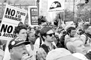数百名护士拉开18日示威序幕,抗议华尔街金融机构的贪婪。不少护士示威过程中跳起事先编排好的舞蹈。“北约到这里来了,让我们在街上跳舞!”