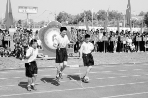 近日,扶沟县2012年中小学生“晨光”体育运动会在职教中心开幕。本次运动会主要比赛项目是跳绳。跳绳运动能提高学生灵敏、协调能力。此次运动会的开展,不仅使跳绳运动在全体学生中得到普及,而且进一步增强了学生体质,促进了学生的全面发展。图为扶沟县城关镇红旗小学学生在开幕式上表演花样跳绳。