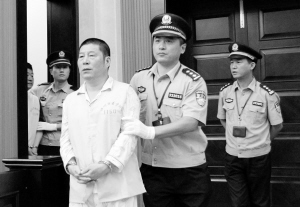 5月22日,温州菜篮子集团原董事长应国权(前左)被带入法庭。