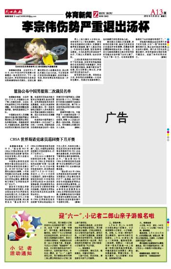 李宗伟伤势严重退出汤杯