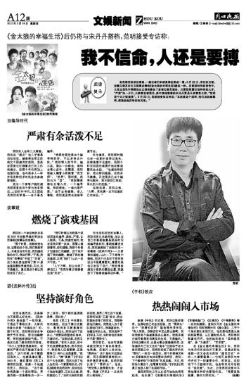 在《金太狼的幸福生活》中,范明与宋丹丹的戏份并不算多,但是这部电视剧一定又会成为范明“演员历史”中的一个重要篇章——它将开启范明与宋丹丹的下一部重要合作,范明说,这部戏下个月就将开机,他会和宋丹丹在剧中“谈恋爱”。为此,近来范明在家中不停地看各种好的影视作品,“我要汲取能量,接住大师的戏。”(张漪)