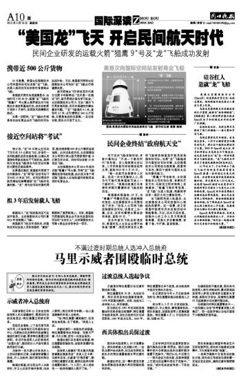 “美国龙”飞天 开启民间航天时代