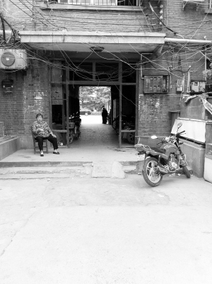 其中一个出口还是几十年前设计的门面楼过道,过道两头带有台阶,居民打此通过只能步行(如图);另一个出口是一条不足50米的砖渣路,砖渣路不宽且有两个直角弯,机动车可勉强通行。不过这条路已年久失修,路面不平。