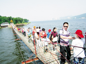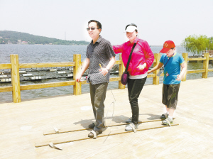 看一看二郎神,摸一摸真飞机,“飞渡”惊险吊桥,漫游水上栈道,蹦蹦跳跳竹竿舞,快乐接力踏板赛……5月26日,本报组织小记者及家长一行近150人奔赴二郎山开展亲子游活动。