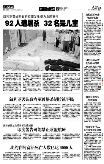 叙利亚否认政府军曾屠杀胡拉镇平民