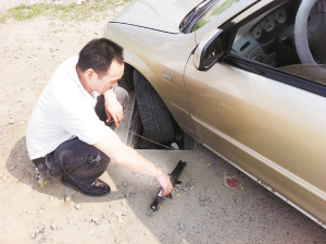 5月28日上午,在周口市区大庆路与庆丰中路交叉口附近,一辆悬挂外地牌照的轿车在倒车过程中,车的左前轮掉到没有盖子的窨井中,车主显得很无奈。“我正在倒车,谁知道路边的窨井没有盖子,幸好车子没有无大碍。要是在晚上,车速快的时候碰到这样的窨井,可就危险了!”车主这样告诉记者。