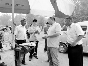当日6时30分许,联合执法队队员出发,先后到红花镇的护当城、南高庄、黄庄、凌桥、郝庄、奎庄等6个行政村检查占道经营情况,发现公路沿线有不少菜农、商贩占道经营(如图),严重影响了交通秩序。联合执法队员现场宣传了占道经营的危害和交通安全知识,并劝说他们到附近农贸市场经营,还道路一个安全、畅通、整洁的环境。