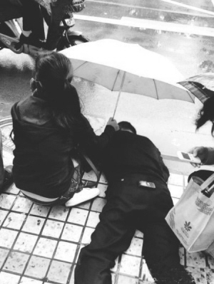 第二天早上,她在电脑上看到一条新闻:男子猝死街头,陌生女孩为他撑起生命的尊严。照片上,她蹲在地上,右手撑伞为黄海建遮着雨,左手打着电话。“我不知道是谁从背后拍下了我的照片。”她看着新闻和网友的评论,在办公室里悄悄地哭了。