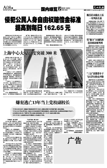 上海中心大厦高度突破300米