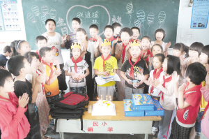 昨天是周口市区新民小学留守儿童张逍遥、吕林和李娇的生日。当天上午,全班同学在老师的帮助下,利用课间休息的10分钟时间,共同为3位留守儿童举办了一个简单的生日会。不过,对3位留守儿童来说,这是一个最难忘的生日会。晚报记者 朱海龙 摄