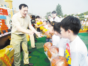 本报讯 5月30日上午,周口市体育局有关人员来到周口市直幼儿园东区分园,将价值3万余元的体育器材免费赠送给在这里的237名儿童,给他们送去了一份“六一”礼物。
