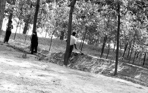 记者在沙颍河苑寨段的一处采砂点看到,三名工人正在忙着“打水圈”。附近一村民介绍,他们白天“打水圈”,是为了晚上伺机抽砂。“最近打击力度大,他们大多在夜间抽砂。”