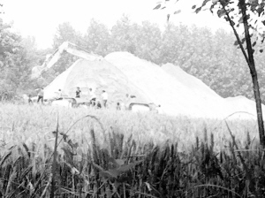 继续往西走,记者眼前出现一个大砂堆,不远处一辆机动三轮车正在运砂。记者发现,附近还有不少砂堆。