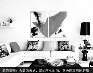 及时收纳小户型空间不容易表现出简洁明快的感觉,尤其空间不足,增加屋内装饰的同时也会存在很多来不及收纳的问题,右图中这个客厅空间,采用了现代简约风格的设计,加入合理的收纳规划,为了使简约空间不失时尚,还在挑选装饰做了一些取舍,如选用蓝色插画巧妙搭配,从视觉上满足夏季空间清爽的需求。提升墙面利用空间也是个好办法,我们可以为墙面装饰上简单的置物架,搭配上绿色的小植物,让空间变得生机勃勃。