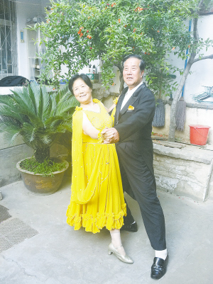 现在,每当社区、县市有表演活动,“常青”舞蹈队总会接到编排节目的邀请。说着,老两口还换上演出服给记者跳了一段(如图)。