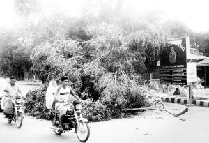 6月6日,在巴基斯坦西北部城市白沙瓦,树木遭到沙尘暴侵袭。 据巴基斯坦当地媒体6月5日报道,巴基斯坦多个地区当天遭到强沙尘暴侵袭,造成至少15人死亡,另有多人受伤。 新华社发