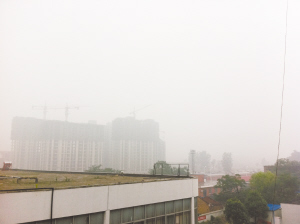 “早上打开窗户,我看到外面有大雾,稍远的景象就看不清楚,还下着小雨,为了不耽误上班,保证行车安全,我比平时提前了半个小时上班。”市民王先生说。