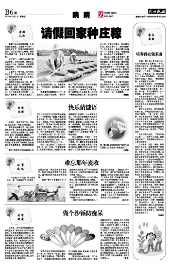 养生专家说,孤独寂寞是导致老年痴呆的主因,无论是与家人一起,还是走进公园,带上自制的沙锤,与其他人一起唱歌、唱戏,其乐融融,都是预防老年痴呆的好方法。不过,需要注意的是,沙锤里的填充物不要装得过多,老人在摇动时不要用力过猛,以免沙锤滑落,伤到自己或他人。(张丽)