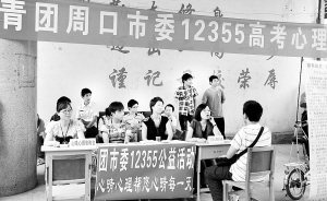 本报讯 昨天上午,团市委12355青少年服务台的8名心理咨询师在周口二高考点前设立“高考心理加油站”,现场接受考生和家长咨询,帮助他们迅速解决心理问题。另外,他们还现场免费发放了“轻松高考与你同行”、“考场五大应急锦囊”等高考应对指南。