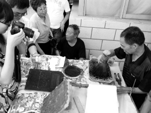 展会现场,我市“夏氏木版年画”传承人夏明芳的手工印刷木版年画演示(如图),让不少上年纪的市民开始怀旧:“这种木版年画,我之前找都找不到、买也买不来,今天我还能收藏一张木版年画,真是太难得了!”据了解,“夏氏木版年画”技艺始于清末民初,传承四代,已有130多年的历史。创始人夏殿君,生于1882年,15岁师从于“志远长”张家,学习“木版年画”技艺多年(张家传人至今保存近20多套清朝手工刻制木版),熟练掌握了勾描、刻版、印刷工序,后流落外地自立门号“仁和长”,以制作销售“木版年画”谋生。夏殿君刻工缜密,古朴雅拙,以刻印神像年画为主,作品多以“灶王”“门神”“菩萨”“玉皇”等为题材。