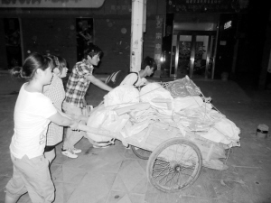 6月8日晚,一群刚参加过高考的学生帮一名老人推车。据介绍,他们帮的那位老人已年过七旬,家住商水县新城区梁庄,当日他收破烂回家途中,架子车突然爆胎,这群刚参加完高考的学生路遇此事,热心地帮他把车推回家,没留下姓名就离开了。