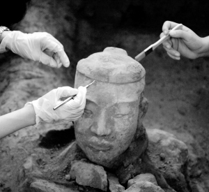 参与考古发掘的陕西省考古研究院副研究员于春雷说:“去年8月份以来,考古人员开始对俗称的百戏俑坑进行考古发掘。经过清理一米至两米的填土层、巨大的夯土层后,我们主要对第三过洞进行了发掘。新发现的陶俑破损严重,估计有20余件,它们应该是南北分两列,面面相对,其中北边的较肥硕,南边的较瘦小,加上原来发掘出的百戏俑,整个百戏俑坑截至目前应有30余件。”