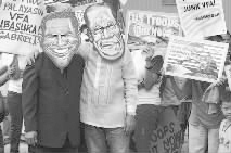 据悉,奥巴马和阿基诺三世两人在会见中没有提到任何有关中国的议题,但奥巴马表示,希望能够按照国际准则保证南海地区的自由航行权。右图为菲民众抗议美菲首脑会面。
