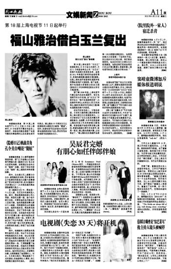 本报综合消息 台湾女星吴辰君于6月9日在日本冲绳低调完婚。作为吴辰君圈内好友,林心如、颜颖思、苏有朋担当了这对新婚夫妇的伴娘伴郎。在娱乐圈多年,拥有好人缘的吴辰君,在其大喜之日,更是得到了来自好友刘德华、许鞍华、陈志朋、吴奇隆等明星送来的祝福。