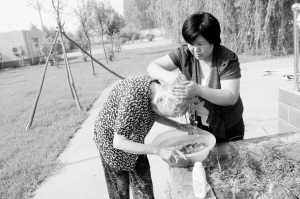了解情况后,消防官兵把她接到了消防大队。在消防大队,消防官兵不仅为老太做了饭,还派人给她购买了换洗的衣服、鞋子,中士郑长江的家属更是主动帮她洗头(如图)、擦身、换衣服。在与老太聊天中,消防官兵得知她有一个儿子,名叫张某,住在该县城关镇附近,但具体位置不清楚。了解这些信息后,消防大队派人到城关镇附近寻找到老太的儿子后,将老太平安护送回家。