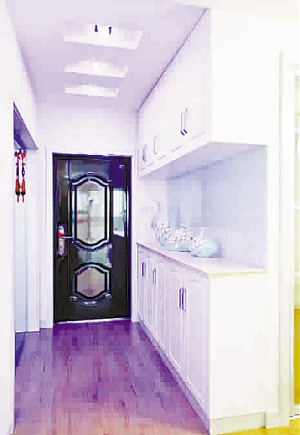 玄关:入户处设计师对原衣帽间的改造一举多得,使得小空间充分利用,把鞋柜移到衣帽间对面形成了玄关,如此只需配搭上三个淡雅的瓷器,便给整个田园风增色不少(B)。