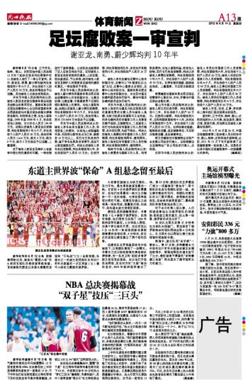 足坛腐败案一审宣判