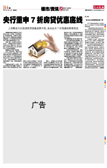 央行重申7折房贷优惠底线