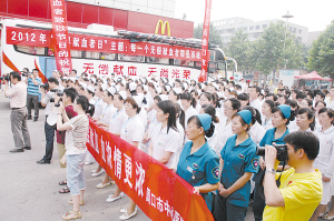 “瞧,这几位都是我们医院的医生、护士,她们和我一样都来报名参加献血的。作为医护人员,我们更加认识到献血的重要性。我们要以实际行动来支持无偿献血。”周口市中医院的一名护士长笑着向记者介绍。
