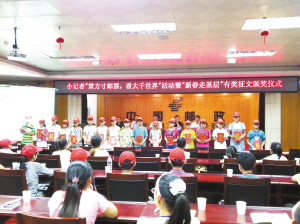 本报讯 小小方寸间,体味大世界。6月16日,周口市邮政局7楼会议室无比热闹,“小记者‘赏方寸邮票,看大千世界’活动暨‘新春走基层’有奖征文颁奖仪式”在这里隆重举行。活动上,“新春走基层”有奖征文获奖的22位小记者受到了表彰,200余名小记者和家长聆听了市集邮协会常务理事王羡荣和步中海为小记者们做的邮票知识专题讲座,并参观了邮展,小记者们在品味集邮文化内涵的同时,也获得了一份成长的礼物。