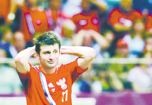 俄罗斯人前两场打入5球,队内的年轻小将扎戈耶夫更是独中三元,昨晨赛前他和德国前锋戈麦斯,以及克罗地亚前锋曼祖基奇并列本届欧洲杯射手榜的首位。昨晨比赛中,打满全场的扎戈耶夫仍是俄罗斯队中发挥最好的人,几乎俄罗斯队每次进攻都有他的参与。生日夜,这位“新沙皇”战斗到了最后一刻。第84分钟他曾险些扳平比分,接到阿尔沙文右路的传中后,扎戈耶夫抢在帕帕斯塔索普洛斯之前头球攻门,只可惜皮球擦着左侧立柱稍稍偏出。