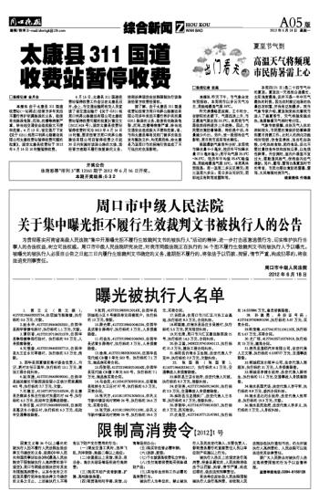 周口市中级人民法院关于集中曝光拒不履行生效裁判文书被执行人的公告